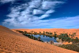 In geography, an oasis (plural: oases) is an isolated area of vegetation in a desert, typically surrounding a spring or similar water source, such as a pond or small lake. Oases also provide habitat for animals and even humans if the area is big enough.